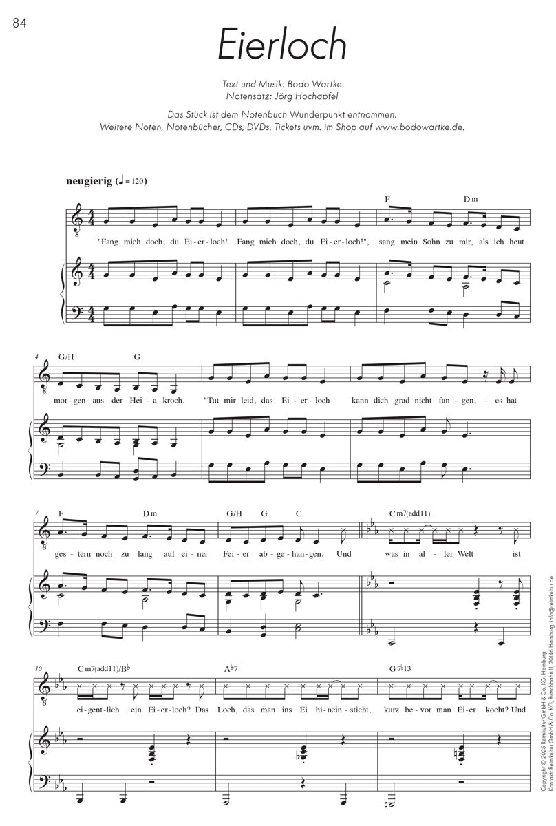 Die Noten zum Stück Eierloch aus dem Programm: Wunderpunkt